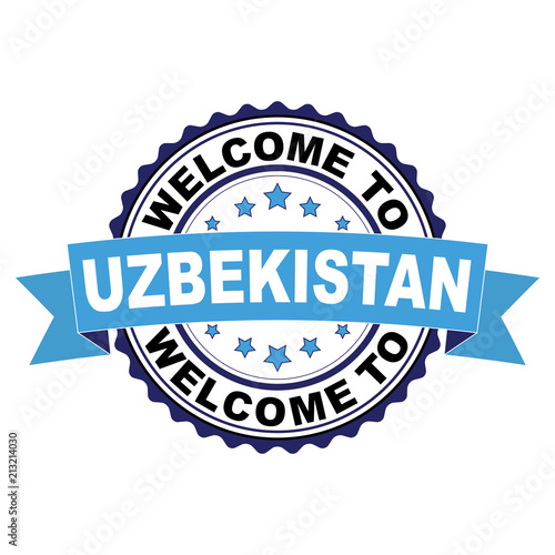 Welcome to Uzbekistan blue black rubber stamp illustration vector on white background