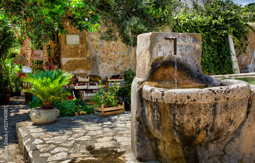 sicilia, sicilian, europa, european, italy, italian, village, well, water, square, tap, palm, stone, running, fresh, refreshing, vital
