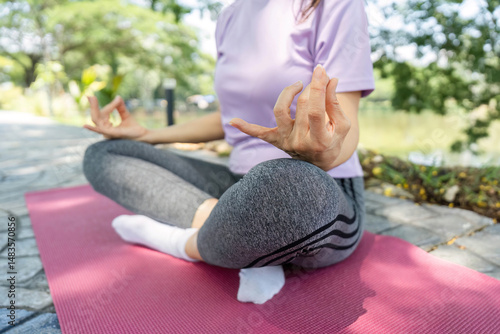 Wellness and Meditation. Woman meditating outdoors in a yoga pose.