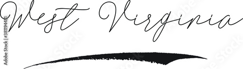West Virginia Cursive Calligraphy White Color Text On Black Background