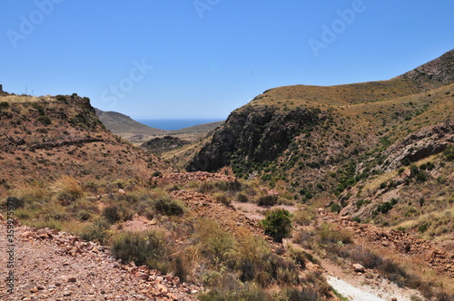 almería, spain, andalusia, landscape, mountain, sky, desert, nature, mountain, rock, blue, rock, travel, hill, view, canyon, vale, green, scenic, outdoors, hill, tree, road, dry, cloud, grass, park, summer
