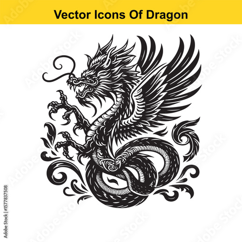 dragon, curled, coiled, resting, sleeping, western, wing, horn, tail, claw, fantasy, reptile, fierce, creature, outline, tracing, black, white, vector, silhouette, mythical, bold, monster, mediaeval, scale, looped, legendary, magical, stencil, strong, simple, elegant, peaceful, lizzard, art, guard, curve, animal