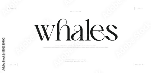 Whales Minimal Fashion font alphabet. Luxury modern urban fonts for logo, brand etc. Typography typeface uppercase lowercase and number. vector illustration