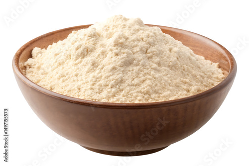 Wheat flour in a brown bowl Isolated on white Background PNG