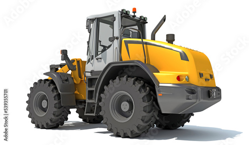Wheel Loader heavy construction machinery 3D rendering on white background