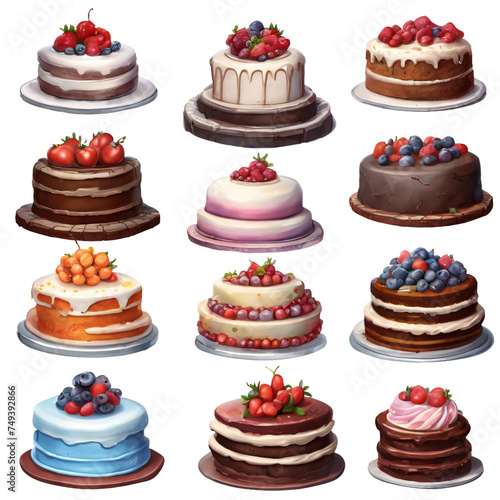 Whimsical Cake Delight - Detailed Cartoon Clipart Illustration