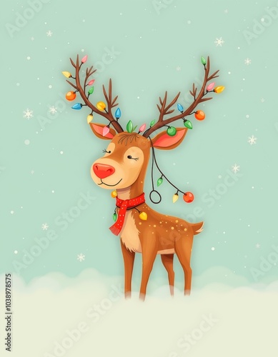 christmas card, reindeer, whimsical, stylish, pastel, snowflake, blank space, playful, chic, festive, minimalist, seasonal, high-quality, professional, hi-res, greeting card, christmas, cervid, winter, animal, snow, cartoon, vector, christmas, holiday, card, illustration, merry, cute, celebration, happy, funny, december, season