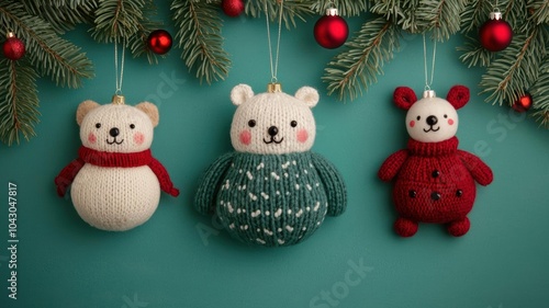 decoration, holiday, festive, bauble, sparkle, glistering, snowflake, light, joy, knit up, animal, decoration, cute, hang, pine, tree branch, summing, charme, fun, style, custom, hand-made, bear, green, children, christmas, wood, winter, sunny, whimsy, stock, bright, design