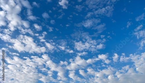 Whimsical Cloudscape: Tranquil Cirrocumulus Clouds Floating in a Sunny Sky, generative AI