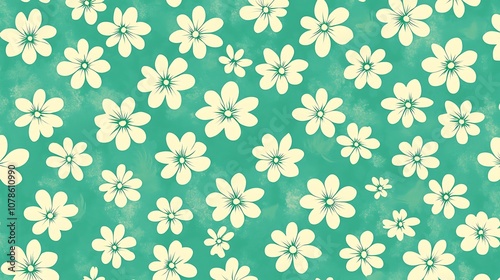Whimsical Floral Pattern with Light Cream Flowers on a Soft Green Background Ideal for Various Creative Projects and Designs