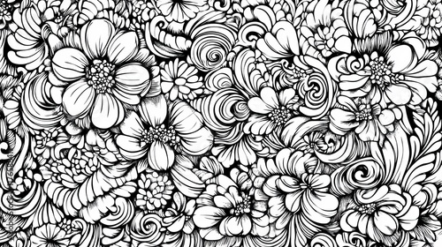 floral, playful, design, black, ink, casual attire, charme, whimsical, seamless, background, repeating, motif, artistic, organic, delicate, freehand, intricate, decorative, creative, retro, ornamental, elegant, simple, stylish, contemporary, illustration