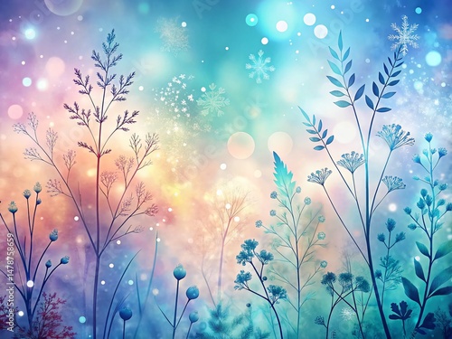 winter landscape, whimsical, pastel, frost, herb, silhouette, winter, wonderland, botanical, plant, magical, glowing, elegant, delicate, artistic, illustration, background, image, photo, winter scene, holiday, christmas, nature, design, art, floral, fantasy, dreamy, christmas background, festive, celebration, greeting card, invitation