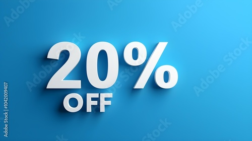 White '20% OFF' Promotional Sign on a Blue Background with Copy Space