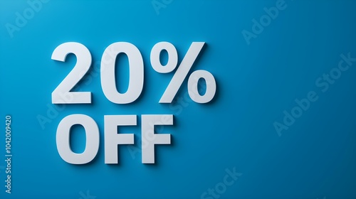 White '20% OFF' Promotional Sign on a Blue Background with Copy Space