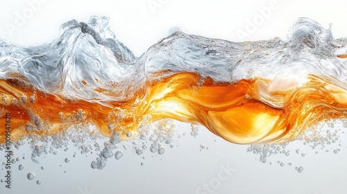 white and orange water bubbles gracefully dance against a pristine white background creating a visually appealing graphic element that captures fluidity
