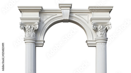 White arch with columns and corinthian capitals on transparent background