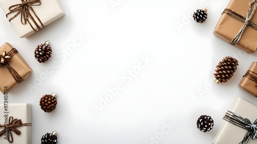 White Background Christmas Gift & Pine Cone Decor