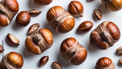 White background featuring isolated chestnuts