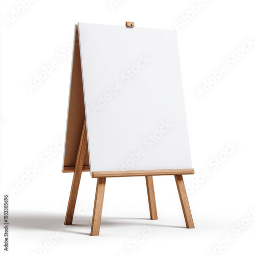 easel, board, white, blank, presentation, display, wooden, racked, isolated, studio shot, front view, clean, empty, surface, advertising, information, message, communication, concept, graphic, design element, template, copy space, minimal, simple, modern, tripod, leg, frame, background, white background, shadow, light, neutral, clear, drawing board, whiteboard, notice board