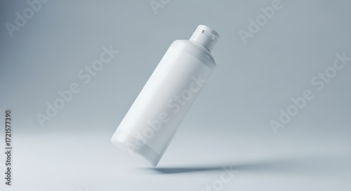 White blank bottle mockup with customizable label floating on light grey background