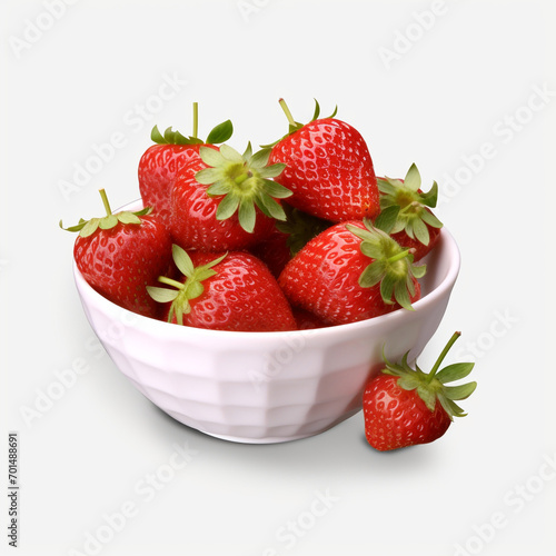 white bowl of strawberries with a green leaf on transparent background created with Generative Ai