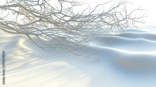 snow, winter, branch, tree, white, abstract, background, texture, nature, landscape, cold, frost, ice, serene, peaceful, calm, minimalist, clean, pure, simple, light, shadow, design, art, graphic, illustration, digital, rendering, three-dimensional, model, surface, pattern, dune, wave, curve, line, delicate, fragile, subtile, elegant, smooth