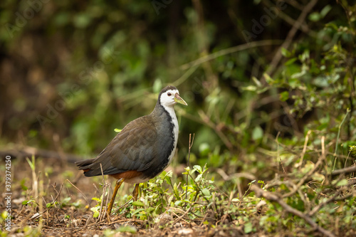 White breasted waterhen or Amaurornis phoenicurus portrait at keoladeo ghana national park or bharatpur bird sanctuary rajasthan india