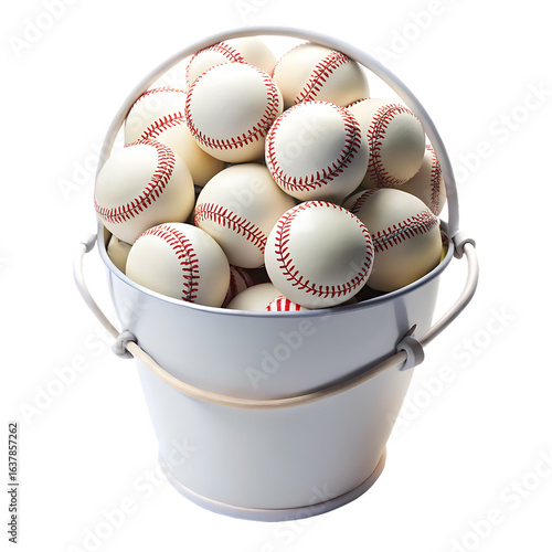 White bucket with baseballs Practice baseballs 3D New baseball practice balls on white background PNG.AI Generated