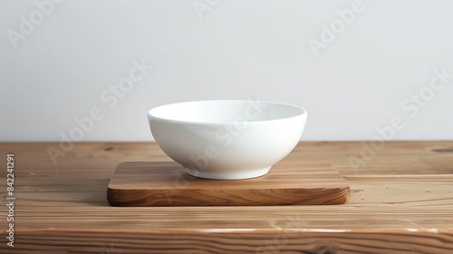 White ceramic bowl on wooden surface, minimalist design.