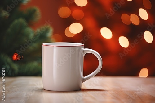 White Ceramic Mockup on Cozy Christmas Background, coffee mug and bottle . Generative AI