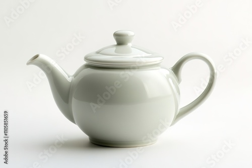 teapot, ceramic, white, isolated, light background, pottery, tea, beverage, kitchen utensile, elegance, minimalist, simple, clean, design, utensil, tableware, porcelain, traditional, classic, copy space, empty space, object, container, serving, brew, household, crockery, item, home, glossy, smooth, curved, handle, spout, lid, image
