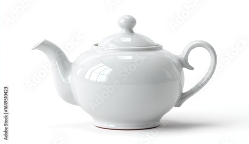 White ceramic teapot, smooth surface, classic design