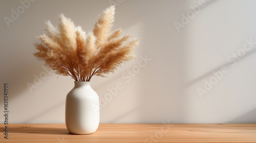 pampas, dried flowers, vase, ceramic, minimalist, minimal, decor, home decor, interior, soft, neutral, beige, aesthetic, modern, contemporary, living room, natural, organic, bohemian, stylish, elegant, arrangement, floral, plant, botanical, still life, soft light, clean, bright, peaceful, calm, warm, cosy, scandinavian, rustic, chic, decoration