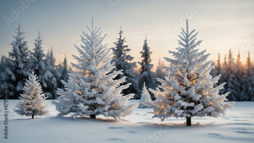 White Christmas trees on white background