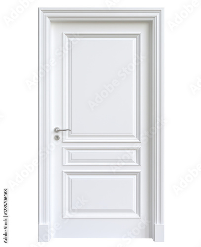 door, white, classic, panel, silver, handle, rectangular, molding, interior, entrance, frame, design, minimalist, modern, stylish, smooth, elegant, structure, architecture, simple, clean, room, wall, home, building, access, house, wooden, decor, closed, flat, plain, residential, minimal, contemporary, construction, indoor, entry, doorway, wood, symmetric, entranceway, architectural, refined, isolated, transparent, background