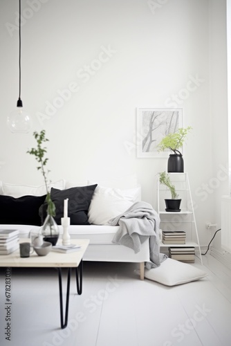 white color bright cosy comfort modern minimal home interior design concept beautiful clear daylight living area woth soft sofa with decoration home interior backdrop