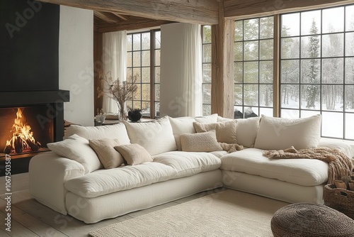 white corner sofa beside a fireplace in a scandinavianinspired modern living room showcasing clean lines soft textures and a warm inviting atmosphere perfect for relaxation