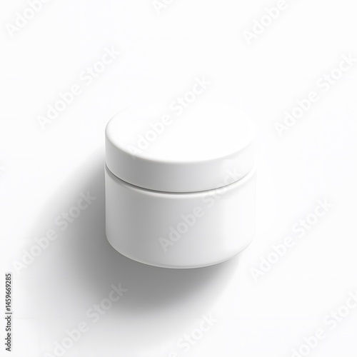 White cosmetic jar mockup on white background, top view