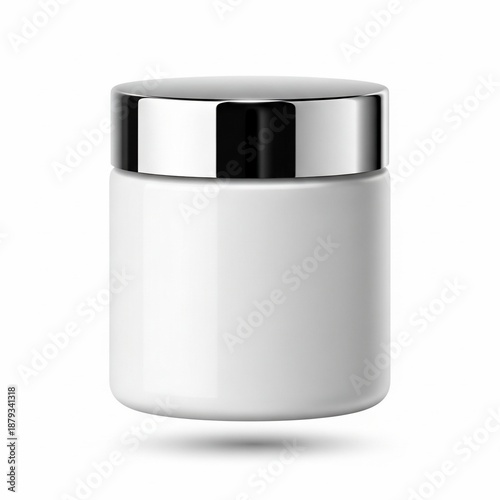 white, cosmetic, jar, metallic, silver, lid, container, beauty, product, cardboard box, cream, lotion, moisturiser, skincare, health, wellness, plastic, glasses, shadow, studio, shot, isolated, background, simple, clean, minimalist, design, luxury, premium, quality, brand, marketing, advertising, promotion, display, presentation, template, cosmetic, health care, toiletry, bottle, tub, pot, vase