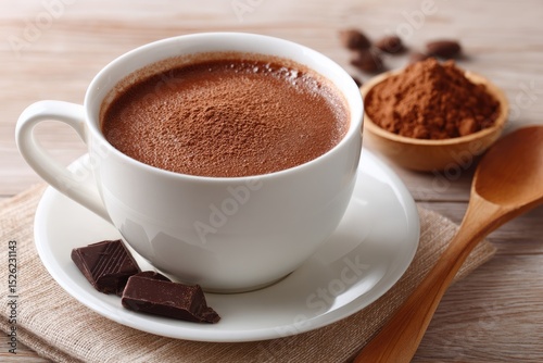 white cup of hot chocolate sits on the table