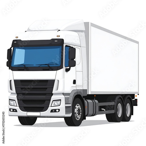 truck, delivery, transportation, freight, cargo, commercial, vehicle, white, modern, illustration, flat, design, logistic, solid, front, view