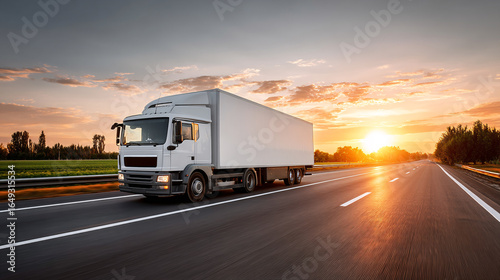 White Delivery Truck on Highway at Sunset Delivering Goods Fast