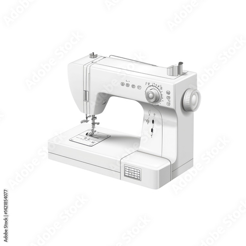 sewing machine, sewing, machine, white, domestic, home, appliance, needle, thread, fabric, textile, clothing, garment, stitch, sewing kit, craft, hobby, bricolage, hand-made, tailor, dressmaker, fashion, design, create, creativity, textile industry, apparel, manufacture, production, technology, equipment, tool, instrument, contraption, mechanism, buttons, control, dial, isometric, isolated, white background, studio shot