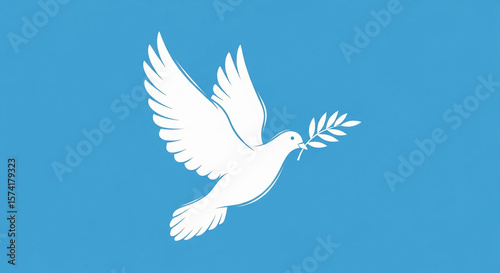 White Dove with Olive Branch Flying in Clear Blue Sky – International Day of Peace Illustration