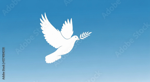White Dove with Olive Branch Flying in Clear Blue Sky – International Day of Peace Illustration