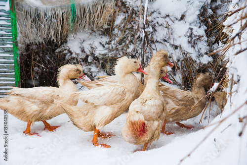 White ducks in the snow