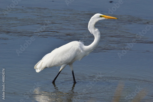 White Egret walking through water
