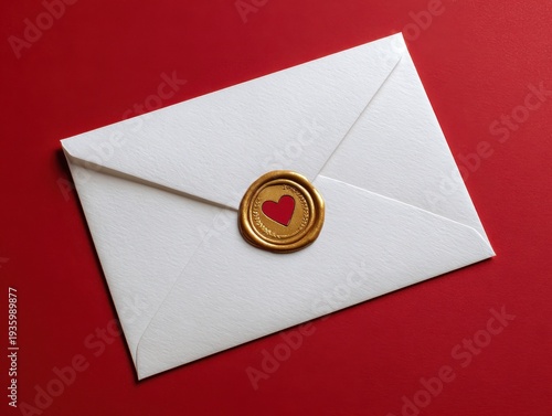 envelope, white, gold, nubes, seal, red background, love, romance, symbol, decoration, isolated, shiny, elegant, luxury, celebration, greeting, invitation, communication, message, mail, special, festive, occasion, anniversary, wedding, valentine, event, holiday, card, decor, metallic, gold, precious, ornament, detail, closeup, decorative, stationary, gift
