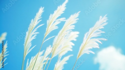 white, grass, blue, sky, fluffy, nature, outdoors, serene, soft, delicate, wind, bright, airy, sunlight, texture, leaf, stem, plant, flora, beauty, tranquil, peaceful, environment, freshness, calm, background, close, up, detail, natural, light, sunny, day, spring, summer, meadow, field, botanical, wild, reed, reed, wheat, cereal, growth, aesthetic, cloud, cloud, simplicity