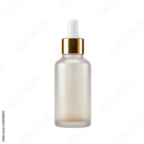 White Frosted Glass Dropper Bottle with Gold Cap on Transparent Background